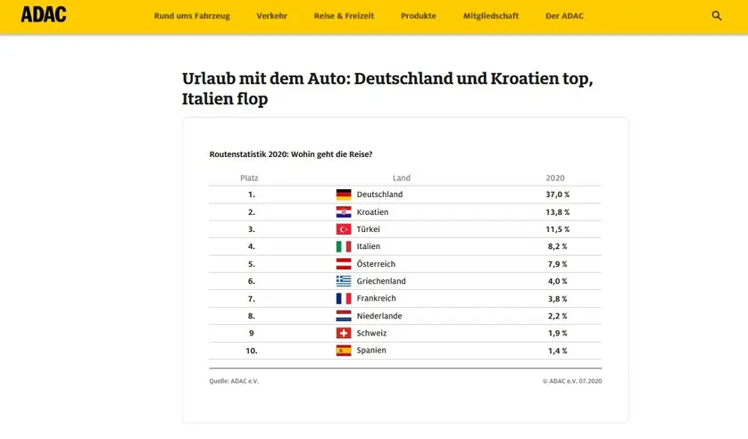 Croatia is the number one foreign car destination for German tourists