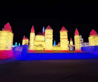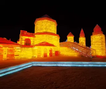 The theme of this year's 22nd Snow and Ice Festival, which will last until the end of February, is the heritage of all 18 participants through the Cooperation between the States of Central and Eastern Europe and China. The festival itself consists of two main exhibition sections, namely the Sun Island recreational section along the Songhua River where giant snow sculptures are displayed and the Ice and Snow World section, which is open only in the afternoon and at night with special illumination of exhibition areas.  The sculptures are the size of buildings and are made from blocks of ice that have been extracted from the Songhua River, which is a very specific technique that requires significant preparation.