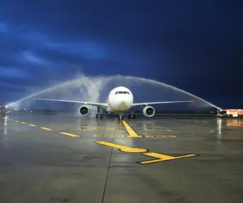 The arrival of the inaugural flight of T'way Air with 337 passengers on the regular route Seoul - Zagreb was marked with a traditional water salute. The plane's landing marked the reconnection of the two capitals after a five-year pause.