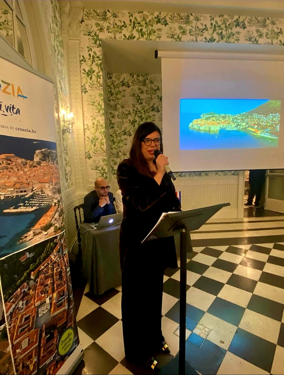 U ime Veleposlanstva Republike Hrvatske u Rimu okupljene je pozdravila Iva Pavić, istaknuvši važnost jačanja prometnog povezivanja i daljnjeg približavanja dviju zemalja.