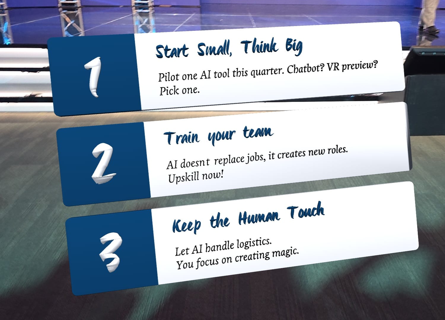 Posebnost ove prezentacije bio je prikaz AR i interaktivnih 3D iskustava uživo, uključujući vizuale inspirirane hrvatskom baštinom i identitetom – od Dubrovačkih zidina i Bašćanske ploče do stiliziranih motiva poput licitarskog srca, periske i prepoznatljivih hrvatskih kvadratića. Također, u sklopu izlaganja je posebno naglašeno kako umjetna inteligencija ne predstavlja prijetnju ljudima u turizmu, već snažan alat koji omogućuje personaliziranija iskustva, učinkovitije poslovanje i dublju povezanost s gostima.