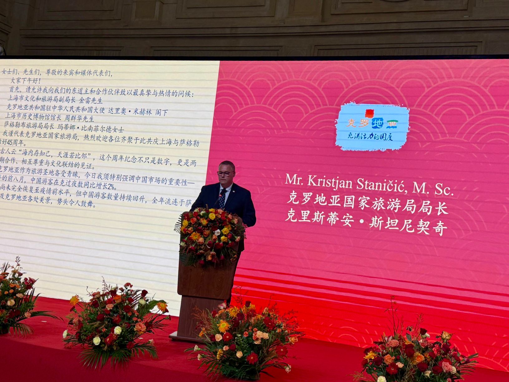 „45. obljetnica prijateljstva nije samo podsjetnik na dugu tradiciju suradnje koja traje još od 1980., već i potvrda predanosti daljnjem razvoju i jačanju odnosa Hrvatske i Kine. Veseli nas kontinuirani porast kineskih gostiju koji uživaju u ljepotama naše zemlje tijekom svih godišnjih doba, baš kao i to što sve više Hrvata zanima bogata turistička ponuda Kine. Sve smo prepoznatljiviji po kvaliteti, održivosti, atraktivnosti ponude, ali i po sigurnosti boravka. Toga su svjesni i kineski turisti koji su u prvih osam mjeseci u Hrvatskoj ostvarili rast u noćenjima od 2 posto u odnosu na isto razdoblje lani“, izjavio je Kristjan Staničić, direktor Hrvatske turističke zajednice, dodajući da je tržište Kine jedno od važnijih kada govorimo o razvoju cjelogodišnjeg turizma u Hrvatskoj.