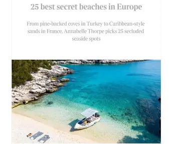 Britanski The Times i The Telegraph objavili su reportaže o hrvatskim plažama i otocima kao nezaobilaznim svjetskim turističkim destinacijama. Riječ je o suradnji Predstavništva Hrvatske turističke zajednice u Londonu s urednicima i novinarima navedenih medija pa je tako britanski Times, kroz tekst 25 best secret beaches in Europe, među 25 najboljih plaža u Europi uvrstio dvije hrvatske plaže, Pasjaču u blizini Konavala te uvalu Ropa na otoku Mljetu, stavivši ih uz bok atraktivnim plažama Španjolske, Portugala, Grčke, Turske i Italije.