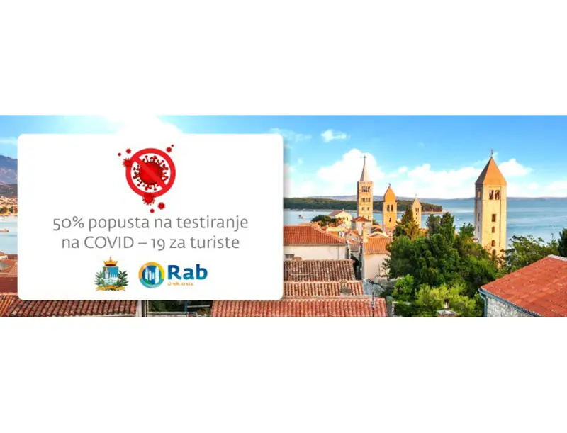 Grad Rab i Turistička zajednica grada Raba, u suradnji s Nastavnim zavodom za javno zdravstvo Primorsko-goranske županije, odlučili su se izaći u susret svojim gostima i sufinancirati troškove testa na COVID – 19 za one turiste kojima je to potrebno. Naime, na sebe će preuzeti 50 posto troška PCR testa na COVID – 19 za turiste koji borave u objektima u domaćinstvu. Riječ je o prvoj inicijativi ovakve vrste u Hrvatskoj.