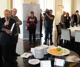 Svi sudionici i posjetitelji nakon prezentacijskog djela upoznali su dio lošinjske gastro ponude na prigodnom domjenku „Apoksiomenova gastronomska priča“ u hotelu Savoia Excelsior Palace. O specijalitetima pripremljenim od namirnicama koje su se koristile i u doba antike te njihovom načinu pripreme govorio je autor kuharice „Apoksiomenova gastronomska priča“, Lošinjan Adrijano Nikolić.