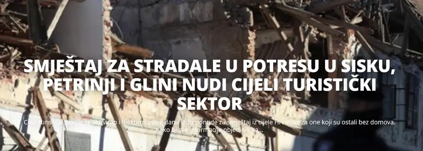 Na portalu HrTurizam.hr objavljen je objedinjeni popis ponuda za smještaj onih koji su ostali bez domova uslijed razornih potresa.