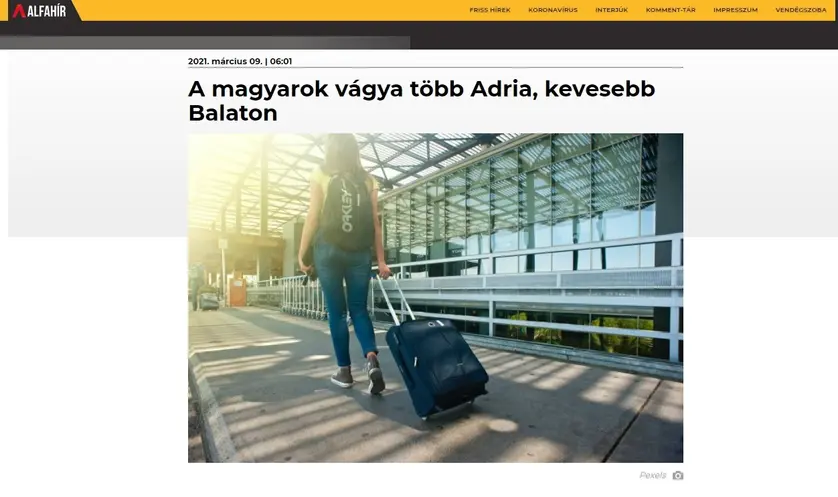 Prikupljeni podaci također pokazuju kako 66 posto Mađara planira putovanje u ovoj godini, a uz samu Mađarsku, jedna od najtraženijih destinacija je upravo Hrvatska. Dodajmo kako su rezultate ankete prenijeli brojni i vodeći mađarski tiskani mediji, kao i internet portali, a među kojima je i portal Alfahir.hu, koji je rezultate ankete objavio u članku naslova „Želja Mađara je više Jadrana, manje Balatona“.