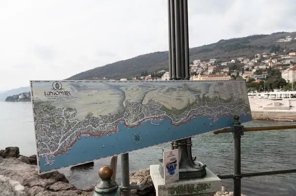 Lungomare je omiljeno mjesto za šetnju Opatijaca i gostiju Opatije, a te će šetnje dobiti jednu sasvim novu dimenziju zahvaljujući novoj, originalnoj i drukčijoj mapi obalnog šetališta, koja izgledom evocira slavna povijesna vremena, a posjetiteljima prikazuje posebnost šetnice što se proteže obalom od Voloskog do Lovrana, kao i bogatstvo i raznolikost povijesnih i turističkih znamenitosti nanizanih uz Lungomare.