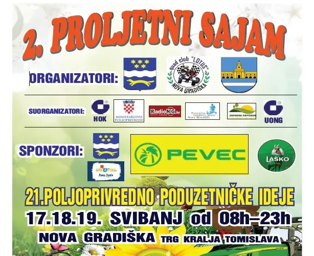 Ovogodišnje poljoprivredno-poduzetničke ideje održavaju se 17., 18. i 19. svibnja od 8 do 23 sata na Trgu kralja Tomislava u Novoj Gradiški. Zajedno s 21. Poljoprivredno-poduzetničkim idejama održava se i 2. Proljetni sajam koji okuplja brojne izlagače – proizvođače cvijeća, ukrasnog bilja, sadnica, vlasnike OPG-ova, obrta i brojne Novogradiščane, putnike namjernike te znatiželjne posjetitelje.