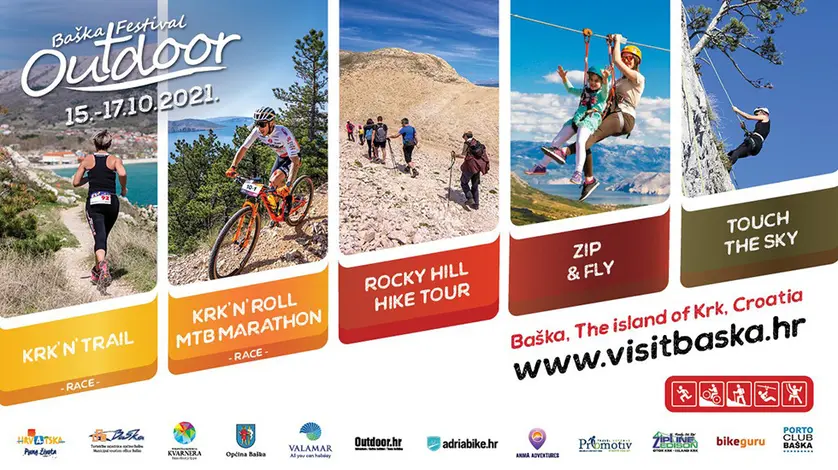 Baška na otoku Krku u sklopu 9. Outdoor Festivala od 13. do 15. listopada svojim posjetiteljima željnim sportskih programa na otvorenom nudi čak pet atraktivnih outdoor sportskih programa, od trail trčanja, brdskog biciklizma, preko planinarenja do penjanja na stijeni i ziplinea, uz posebne pogodnosti smještaja. Ljeto u Baški tako se nastavlja nizom sadržaja za ljubitelje aktivnosti na otvorenom, za sve uzraste i gotovo sve težinske kategorije u planinarenju, trailu i brdskom biciklizmu. Uz brojne sportske i rekreativne programe za djecu i odrasle, tijekom tri dana trajanja, festival uključuje i zanimljiva popratna predavanja, video projekcije, radionice i zabavni program.