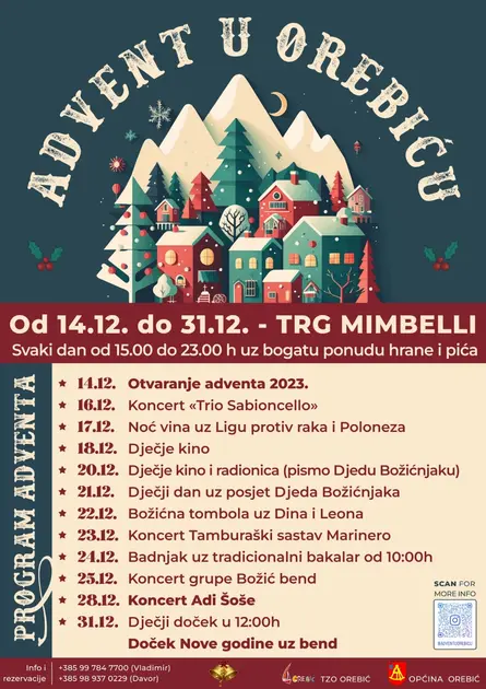 Advent u Orebiću možda nije tako velik, ali ćete zasigurno uživati u odličnoj zabavi, toplini blagdana i puno ljubavi. Sve će se zbiti na novouređenom trgu Mimbelli s početkom 14. prosinca, a završava dočekom Nove godine.