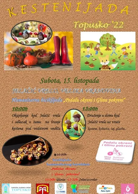 U organizaciji Turističke zajednice Općine Topusko, Općine Topusko i Turističke zajednice Sisačko-moslavačke županije, u subotu, 15. listopada 2022. godine, s početkom u 10 sati, održat će se tradicionalna manifestacija „Kestenijada u Topuskom“.