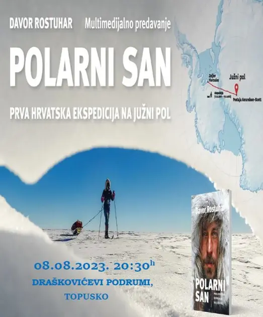 Jedan od najplodnijih hrvatskih putopisaca i istraživača Davor Rostuhar gostuje u Topuskom. U utorak 8. kolovoza od 20.30 sati u Draškovićevim podrumima podijelit će s posjetiteljima "Polarni san", kako je nazvano multimedijalno predavanje na kojem će govoriti o prvoj hrvatskoj ekspediciji na Južni pol. Osmislio ju je i proveo upravo Rostuhar u samostalnoj režiji i o svojoj avanturi do samog središta Antarktike napisao i istoimenu hit knjigu. Kako se pripremao za zahtjevno putovanje, s kakvim se izazovima nosio, kako je proživio ekstremne hladnoće i bi li sve ponovio, autor će predstaviti kroz riječi i slike na susretu u organizaciji Turističke zajednice Topusko i uz podršku TZ Sisačko-moslavačke županije i Top Termi Topusko. Ulazak na ovo sasvim sigurno osvježavajuće i nadahnuto predavanje u ljetnoj večeri je besplatan.