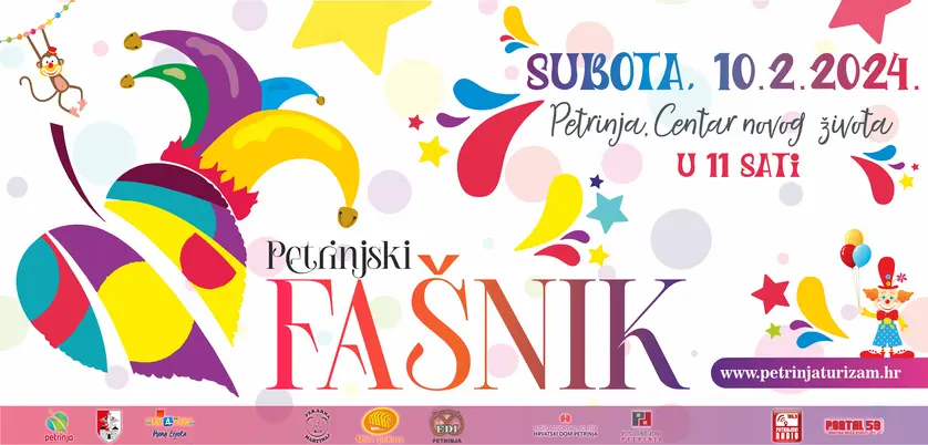Petrinjski fašnik održat će se u subotu, 10. veljače 2024. godine u Centru novog života. Fašnička promenada kreće ispred trgovine Studenac u 11 sati.
