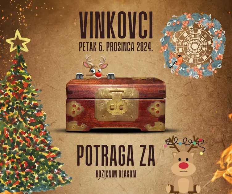 U petak, 6. prosinca, s početkom u 18 sati održat će se "Potraga za božićnim blagom" u Vinkovcima, timska utrka gastro zabavnog karaktera u kojoj natjecatelji odgovaraju na pitanja vezana uz Vinkovce i povijest Vinkovaca te degustiraju tri vrste rakije, kiflice, čvarkuše i kobasice.