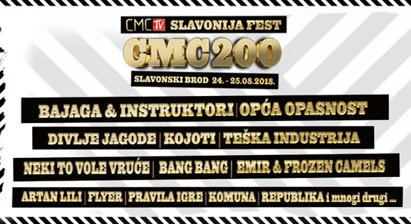 U suradnji s Turističkom zajednicom i Gradom Slavonskim Brodom, CMC televizija treću godinu za redom organizira CMC festival ‘na kontinentu’. Barokna pogranična tvrđava na rijeci Savi, 24. i 25. kolovoza, pretvorit će se u veliku koncertnu pozornicu na kojoj će izvođači predstaviti svoje nove glazbene uratke, s naglašenim pop rock izričajem.