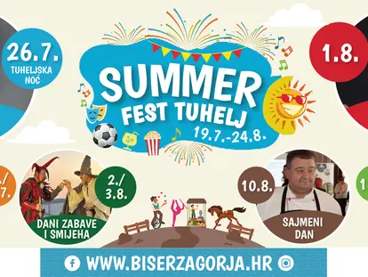 Tjedan nastavljamo uz proslavu i obilježavanje blagdana Velike Gospe uz svečanu misu i procesiju te pučku veselicu uz vatromet u ponoć i ples i glazbu dugo u noć. Ovogodišnje ljetno druženje u sklopu Summer Festa Tuhelj završavamo s koncertom KUD-a Naša lipa i Puhačkog orkestra Lipa Tuhelj 17. kolovoza, Obiteljskim danom u petak, 22. kolovoza, te 24. kolovoza najboljom u Hrvatskoj ovogodišnjom amaterskom predstavom „Svoga tela gospodar“ u izvedbi KUD-a Naša lipa Tuhelj.