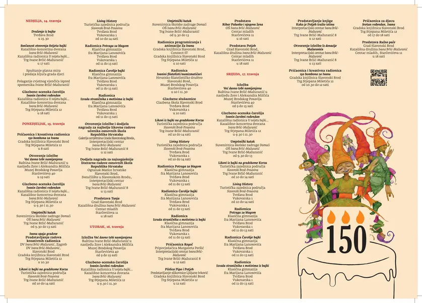 S obzirom na to da je Ivana živjela upravo u Slavonskome Brodu, u ovom gradu na obali Save Ivana Brlić-Mažuranić stvorila je većinu svojih likova iz bajki pa će brodski mališani preuzeti ključ grada i oživjeti neka druga, ljepša vremena i djetinjstva.
