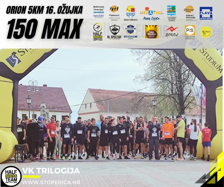 Utrka Orion od 5 kilometara održat će se 16. ožujka u 16 sati, a start je kod Pješačke zone Vinkovci. Startni paketi su osigurani za prvih 150 trkača koji izvrše uplatu, ostali će imati mogućnosti trčati sa startnim brojem.