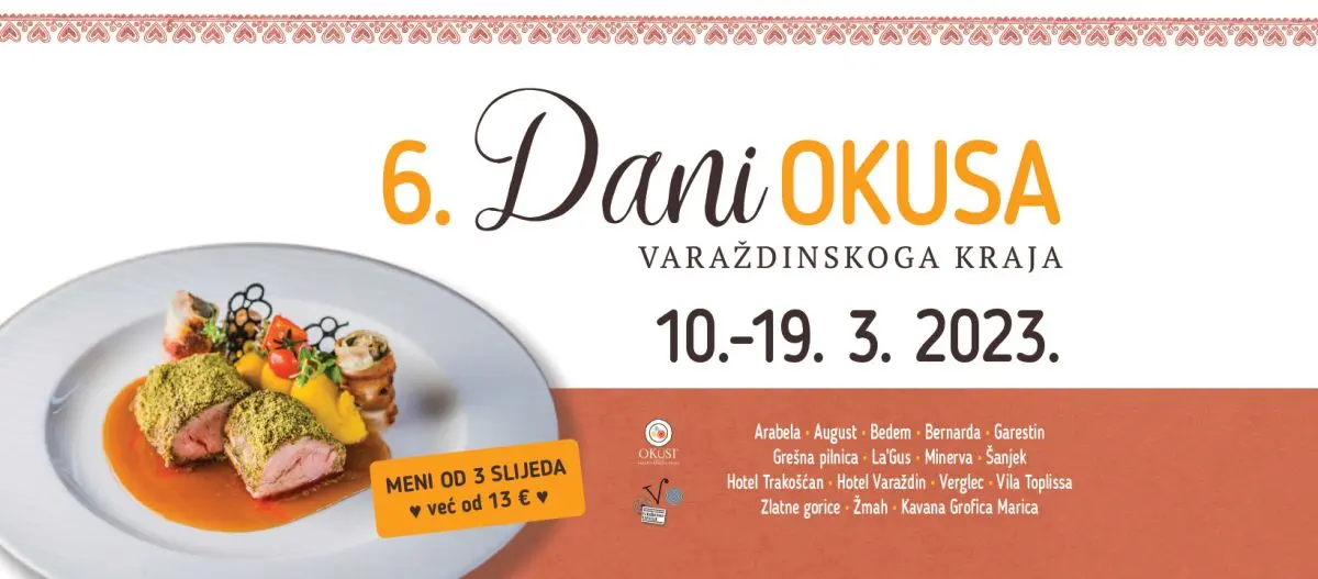 Od 10. do 19. ožujka 16 ugostiteljskih objekata, nosioca standarda Okusi varaždinskoga kraja omogućit će ljubiteljima gastronomskih specijaliteta da po promotivnoj cijeni uživaju u menijima od tri slijeda jela spravljenih od tradicijskih namirnica našega kraja.