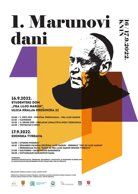 1. Marunovi dani u Kninu: kulturno - umjetnički program, radionice, razgledi i predavanja u čast fra Luje Maruna