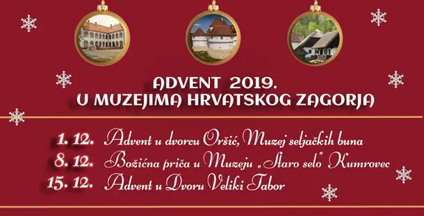 „Adventom u Muzejima Hrvatskog zagorja“, koji traje do 15. prosinca, želimo podsjetiti na pravu prirodu Došašća, na razdoblje iščekivanja dolaska maloga Boga. U sklopu programa očekuje vas Adventski sajam u dvorcu Oršić, Advent u Dvoru Veliki Tabora i Božićna priča u Muzeju „Staro selo“.