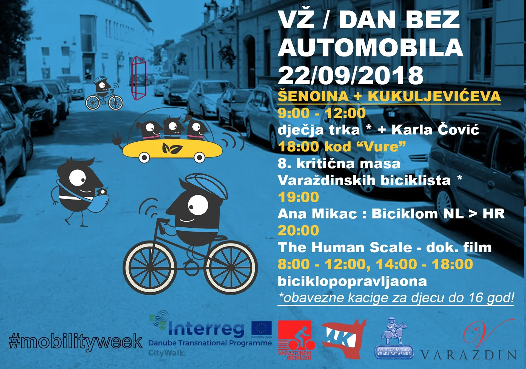 U subotu, 22. rujna u Varaždinu će se brojnim aktivnostima obilježiti Europski tjedan mobilnosti te će se Varaždin tako pridružiti grupi od preko 2600 gradova iz 53 zemlje u kojima se obilježava tjedan mobilnosti. Za promet motornih vozila zatvaraju se ulice Augusta Šenoe i Ivana Kukuljevića Sakcinskog.
