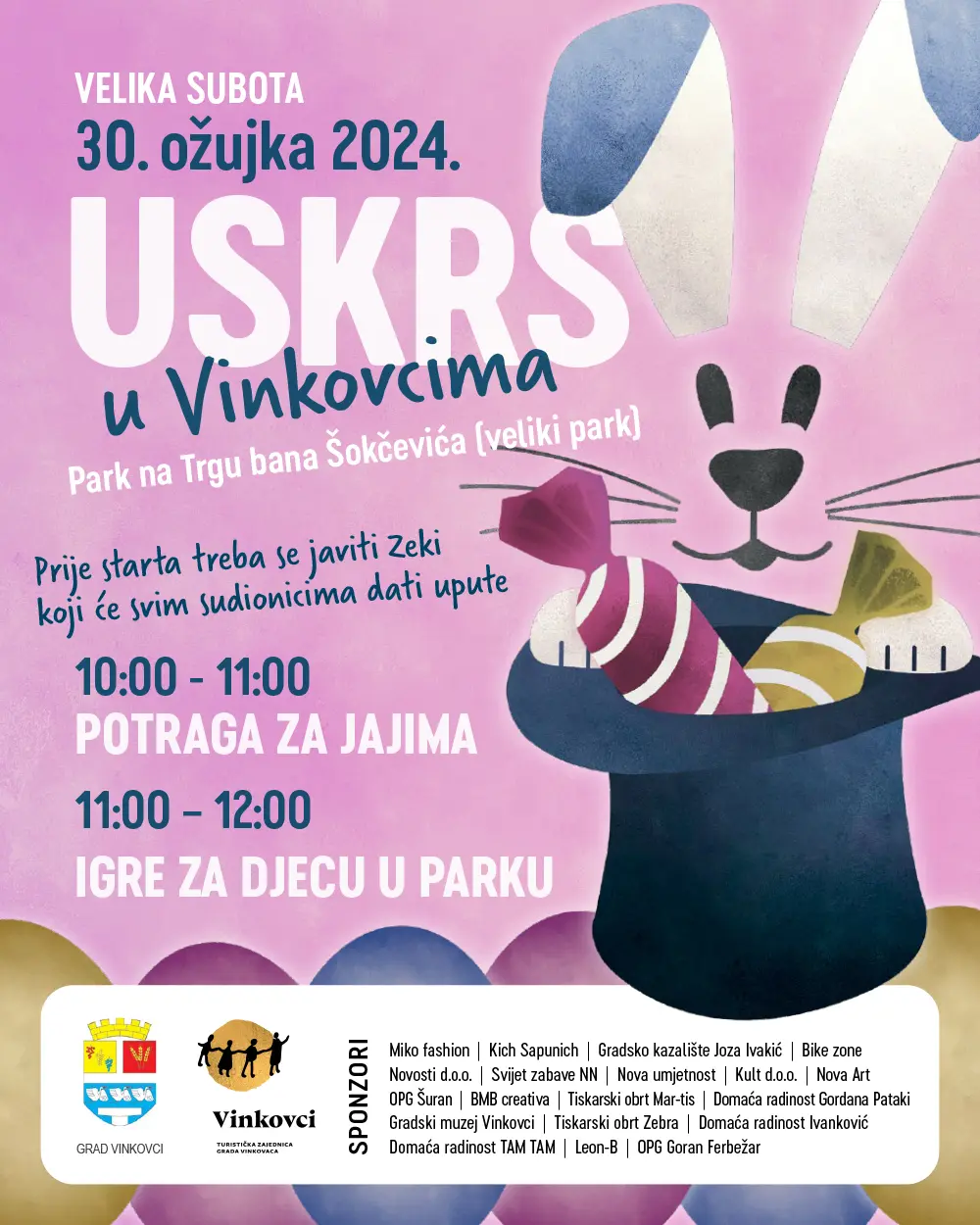 Glavni događaj je potraga za uskršnjim jajima koja će se održati 30. ožujka u parku na Trgu bana Šokčevića s početkom u 10 sati